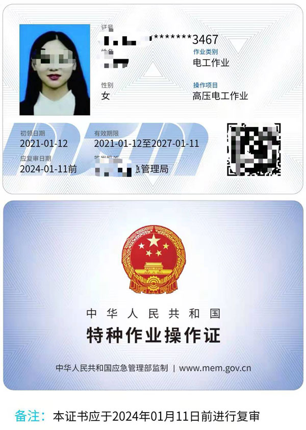 從2020年3月份起,高壓電工證書(shū)以新版的證書(shū)統(tǒng)一印制,分為電子證和實(shí)體證兩種類(lèi)型,證書(shū)由相關(guān)部門(mén)頒發(fā),有效期是6年,每3年復(fù)審一次。